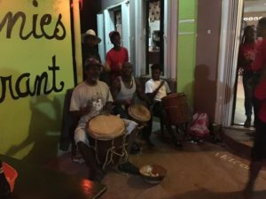 he village. The Garifuna drumming session we are invited too gets everyone dancing.